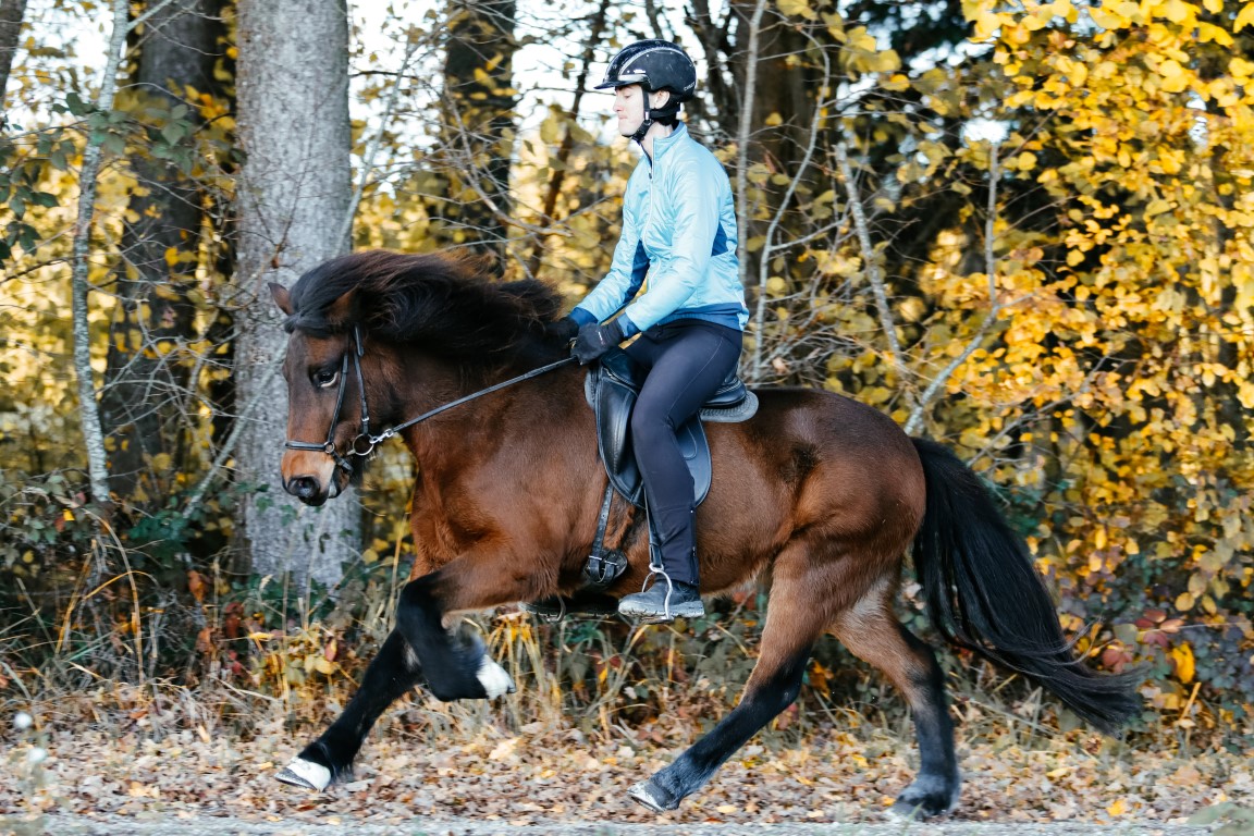 Ganglich ist die sehr große Tochter von Óðinn vom Habichtswald auf jeden Fall spannend… Sie wurde bis dato freizeitmäßig geritten, ihre Gänge sind bei Weitem noch nicht fertig ausgebildet und sie zeigt viel Talent auch im Sport Freude zu bereiten. Starke Hinterhand, lange Tritte, gleichmäßige Gangverteilung und gutes Go laden zur weiteren Entwicklung ein. Sólbrúnka ist genau die richtige Partnerin für jemanden, der/die ein williges Pferd mit schönen Anlagen zum selber weiter Fördern sucht.