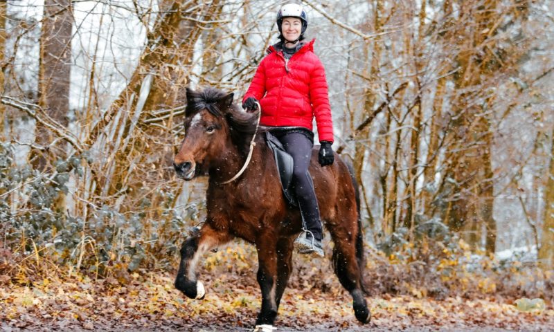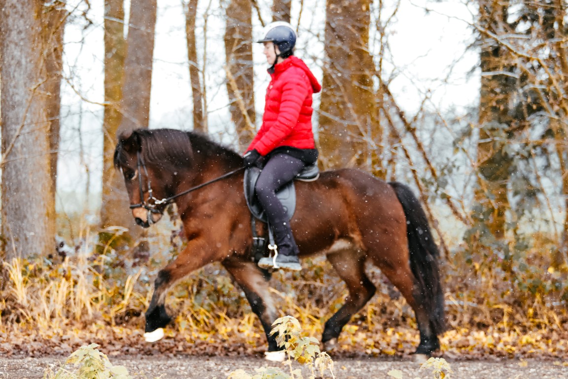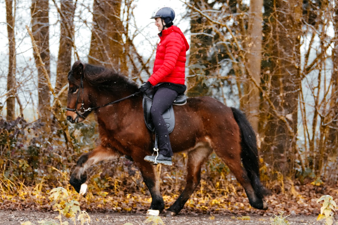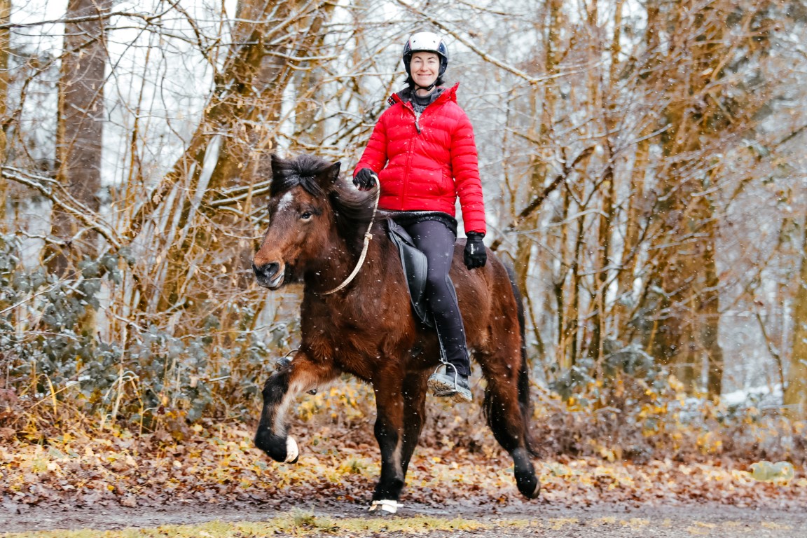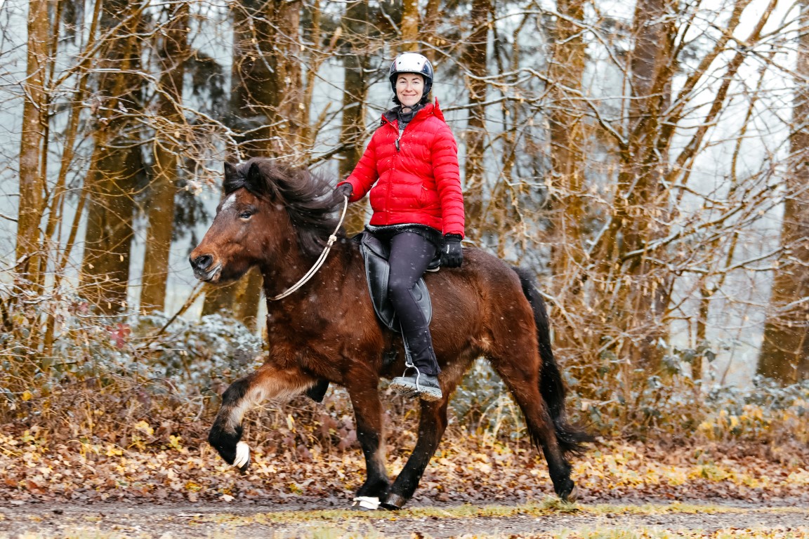 Tölt, Tölt, Tölt… Warum machen wir mit der großen braunen Stute DE2019234554 - Spes von Glashütte Tölt-Bilder mit Halsring? Offensichtlich schon mal, weil sie sehr brav ist. Aber vor allem auch deswegen, weil Spes so viel taktklaren, einfachen, flüssigen Tölt mit schönem Temporahmen hat. Und natürlich auch um zu zeigen, dass Zügelüberstreichen voll ihr Ding ist. Spes liebt es alleine und in Begleitung durchs Gelände zu tölten, sie ist dabei mutig, sicher und immer motiviert. Die anderen Bilder zeigen, dass Spes ebenfalls ansprechend trabt und galoppiert. Und wie ihr Name „die Außergewöhnliche“ schon verrät, einfach außergewöhnlich viel Freude macht.